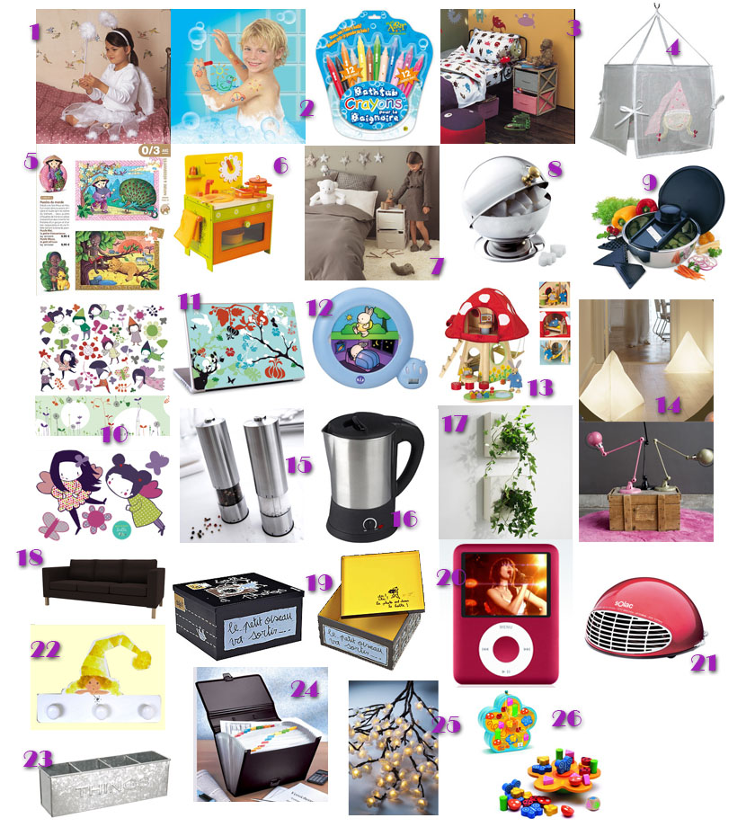 Sur cette page, j'ai craqué pour tout, mais surtout, pour la petite cuisinière en bois. Elle est à croquer, les couleurs sont gaies sans être criardes, et puis pour l'avoir vue en vrai, elle est petite, la taille vraiment idéale pour la toute petite chambre du crapaud. Bien sur il y a aussi les petits accessoires comme le kit "goûter d'anniversaire" ou le kit "légumes à découper"... |